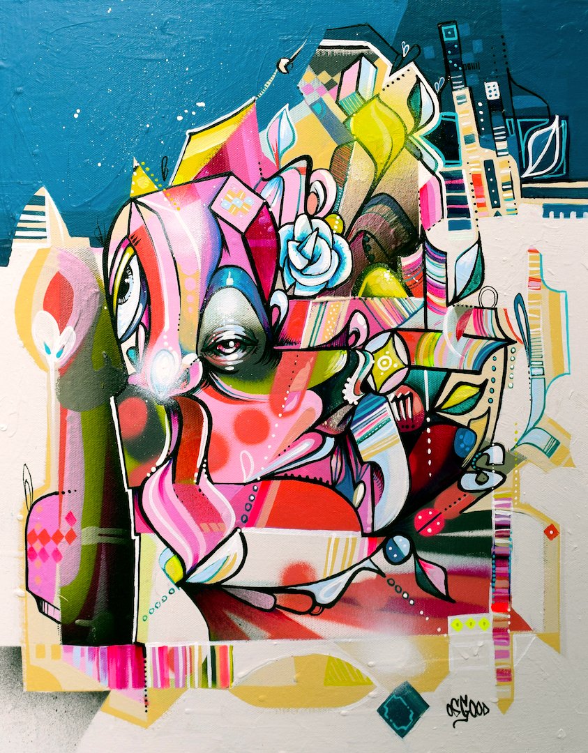 Acrylic & Aerosol on Canvas | 21.5” x 17.5” | 2018