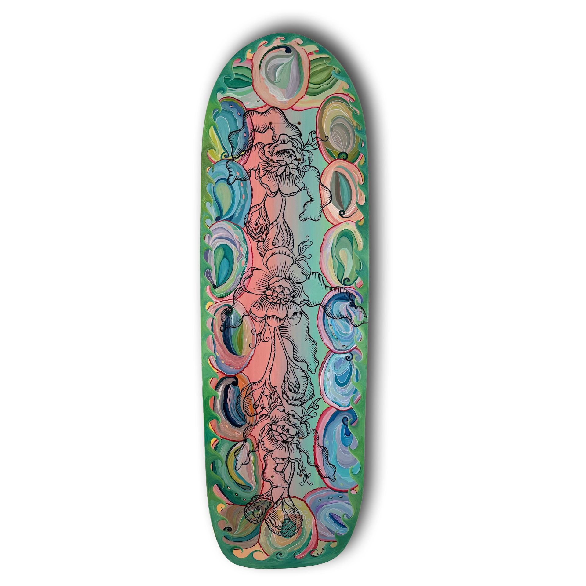 Acrylic on Skate Deck | 10″ x 33″ | 2025
