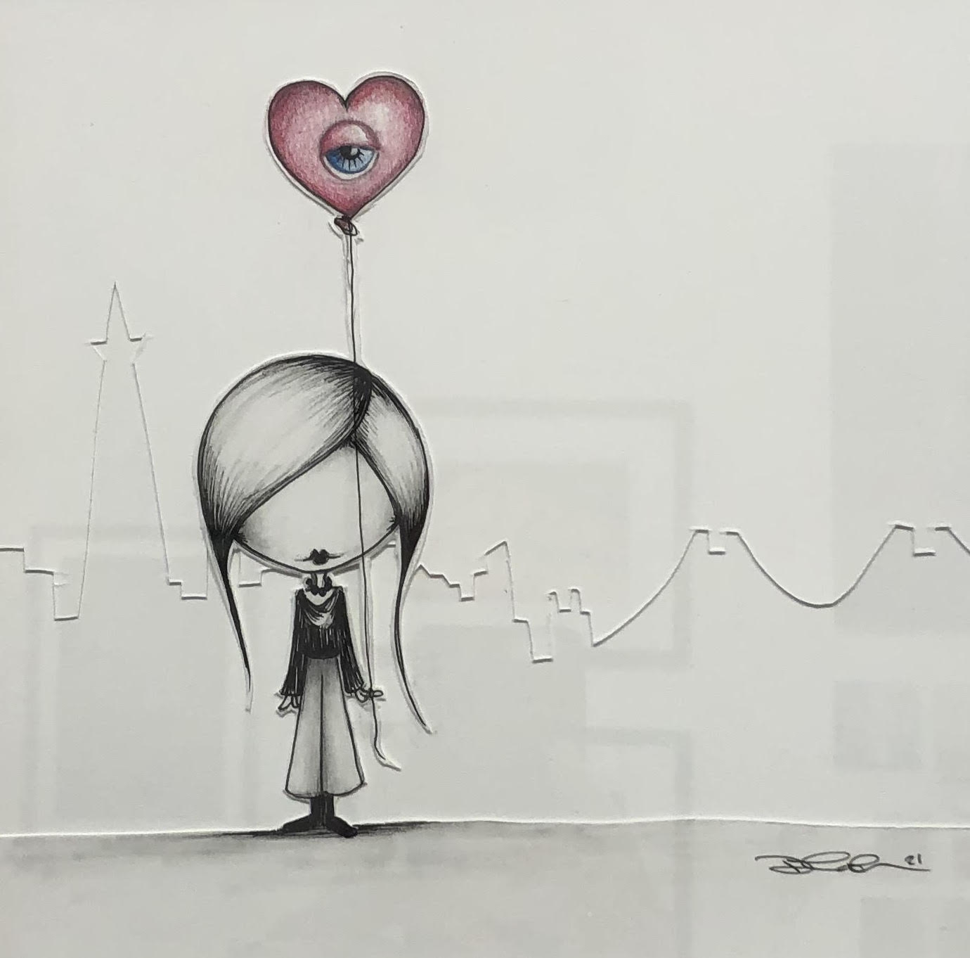 Look With Your Heart – Ink, Colored Pencil, Papercut