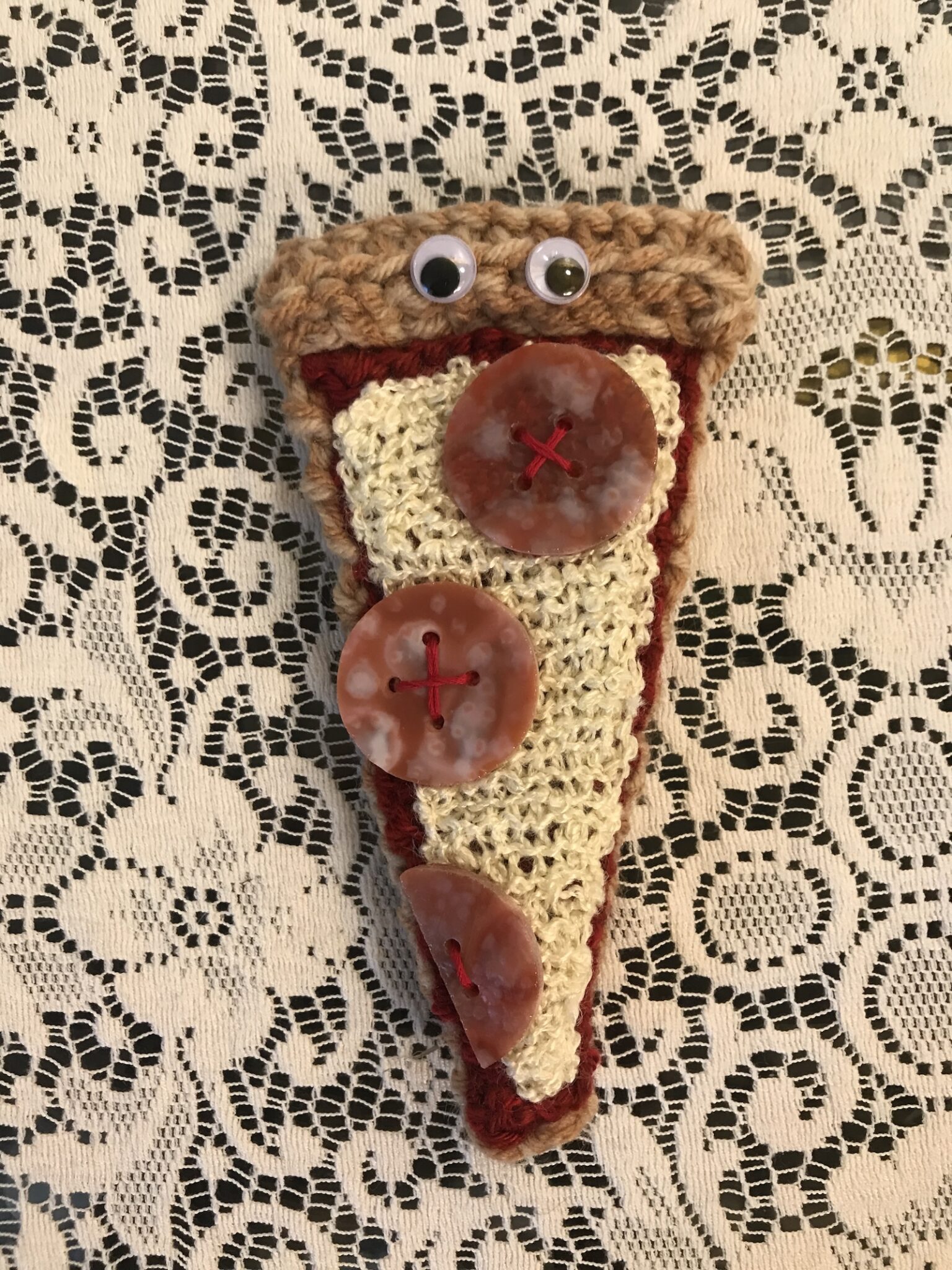 crocheted yarn, glass,googly eyes | Life Size | 2023