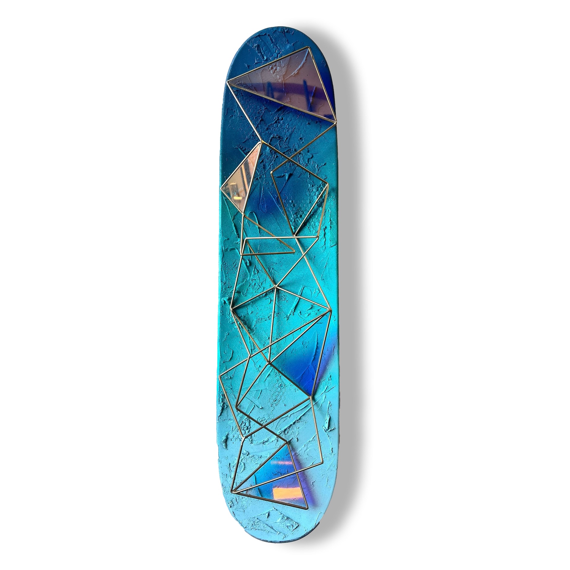 Mixed Media on Skate Deck | 8″ x 31″ | 2025