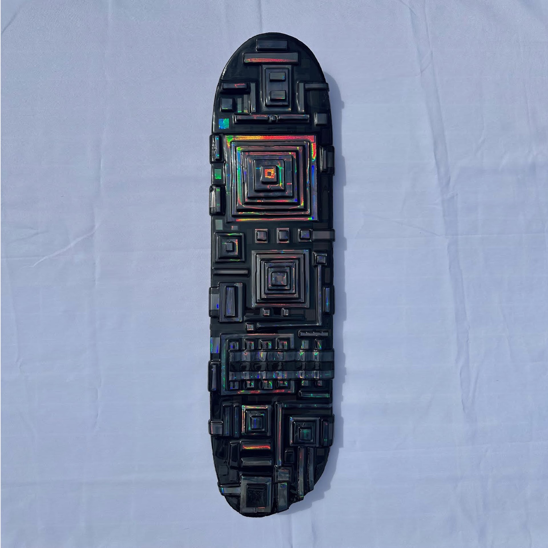 Canvas Tape and Resin on Used Skate Deck | 8″ x 32″ | 2025