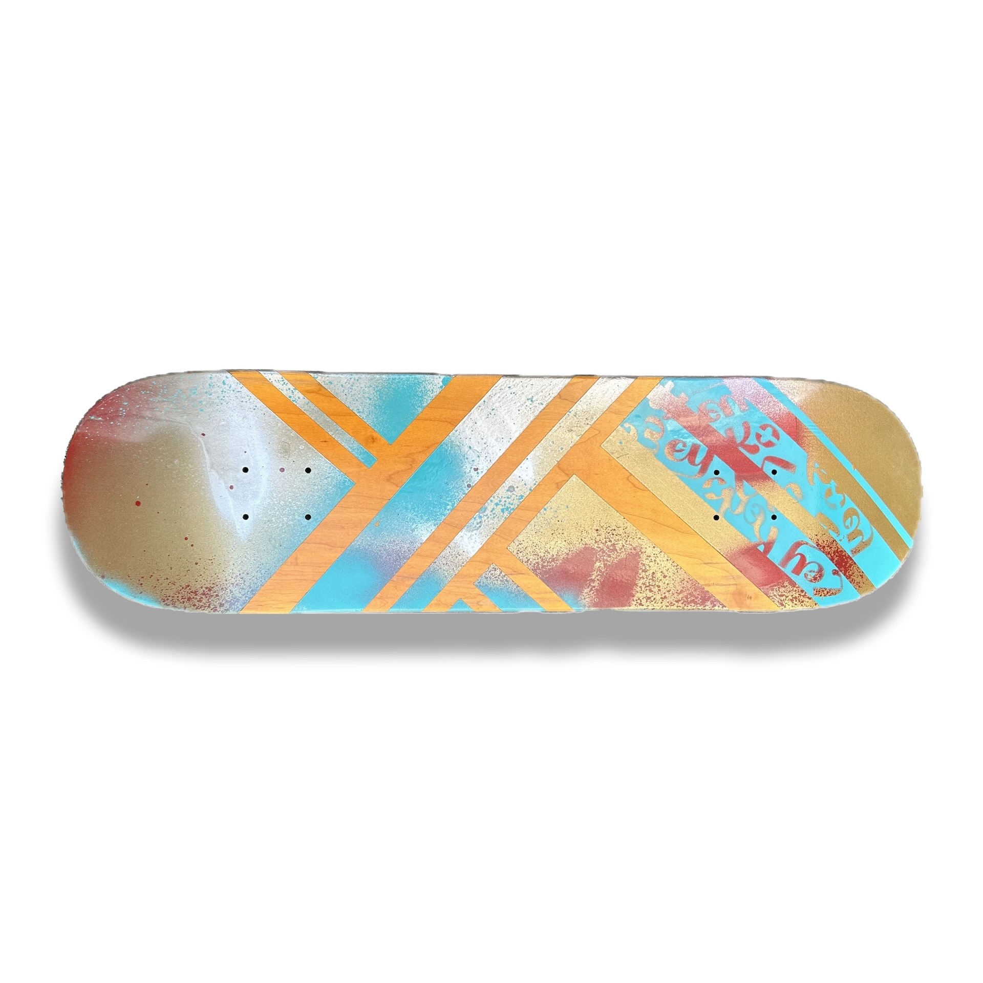 Acrylic and Spray Paint on Skate Deck | 9″ x 33″ | 2025