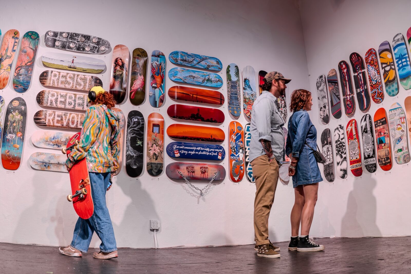 On April 11th, 111 Minna Gallery hosted the opening reception SKATE, curated by Irene Hernandez-Feiks. This vibrant exhibition celebrated skateboarding culture and its powerful impact on the Bay Area art scene. Featuring nearly 300 artists and over 400 skate decks transformed into painted and sculptural masterpieces, SKATE connected legendary figures with rising talents. The event highlighted San Francisco’s deep skate heritage, seamlessly merging art, music, and community into a dynamic and memorable experience.